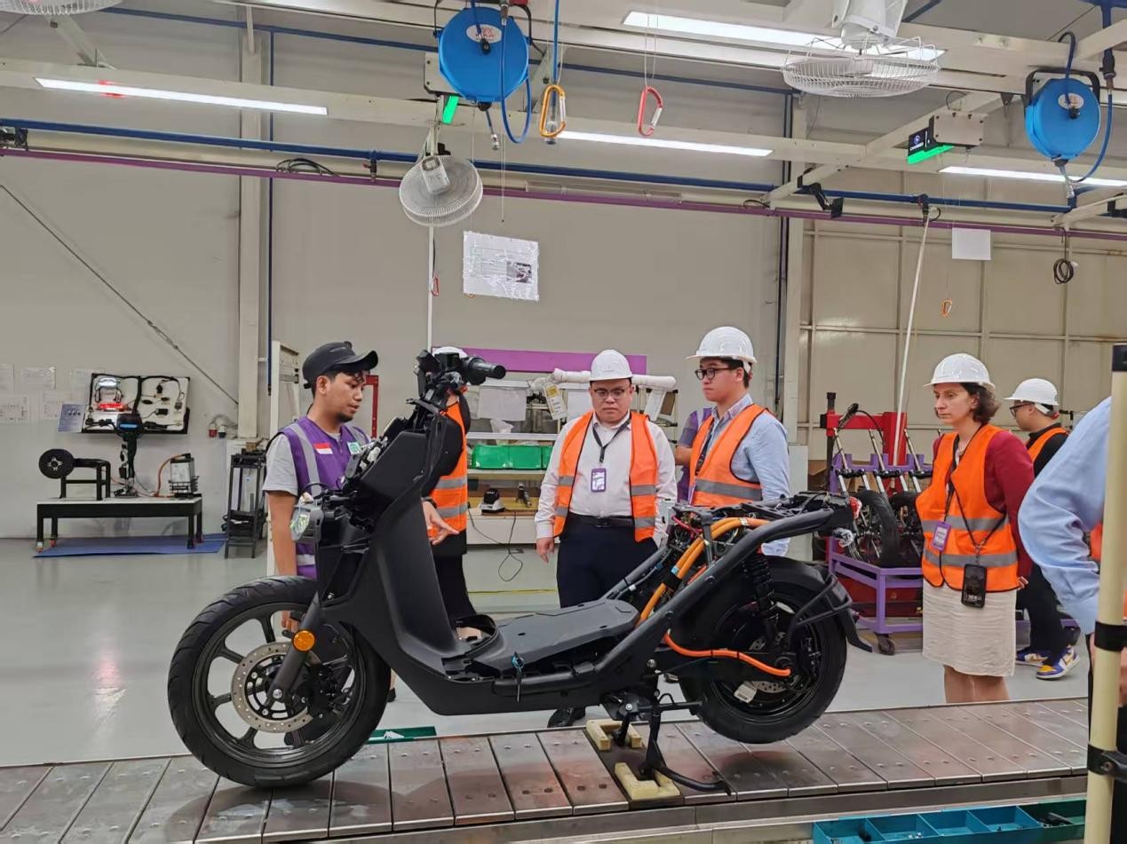 代表團實地參觀了Charged電動助力車生產(chǎn)基地,公司CFO Devid Pramono、供應(yīng)鏈負(fù)責(zé)人Fadilah Rosandi等介紹了其以訂閱服務(wù)為主的業(yè)務(wù)模式、技術(shù)路線及市場表現(xiàn)。雙方就鉛酸電池與鋰電池的技術(shù)應(yīng)用及本地化生產(chǎn)等話題進行了深入探討。