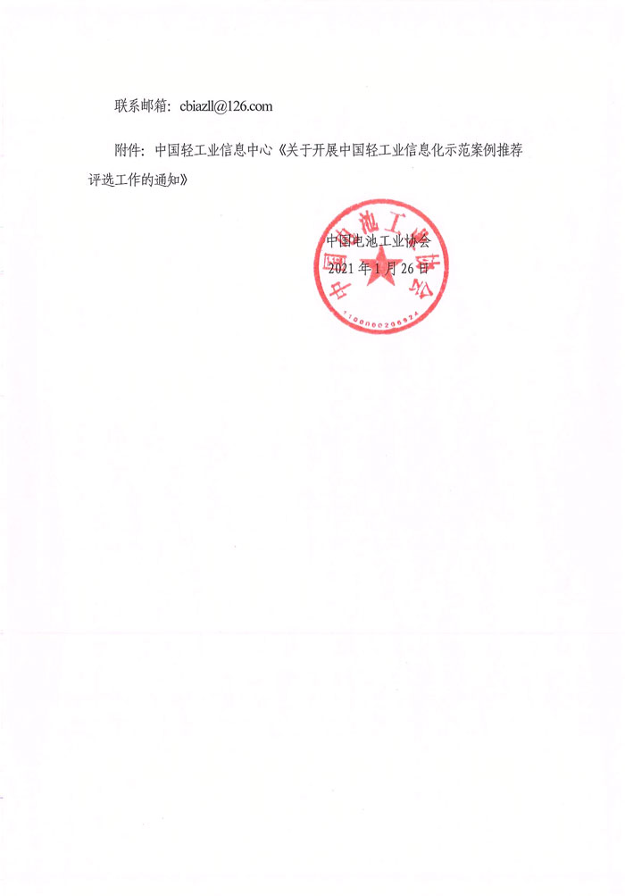 關于組織參加中國輕工業(yè)信息化示范案例推薦評選的通知-中國電池工業(yè)協會.pdf