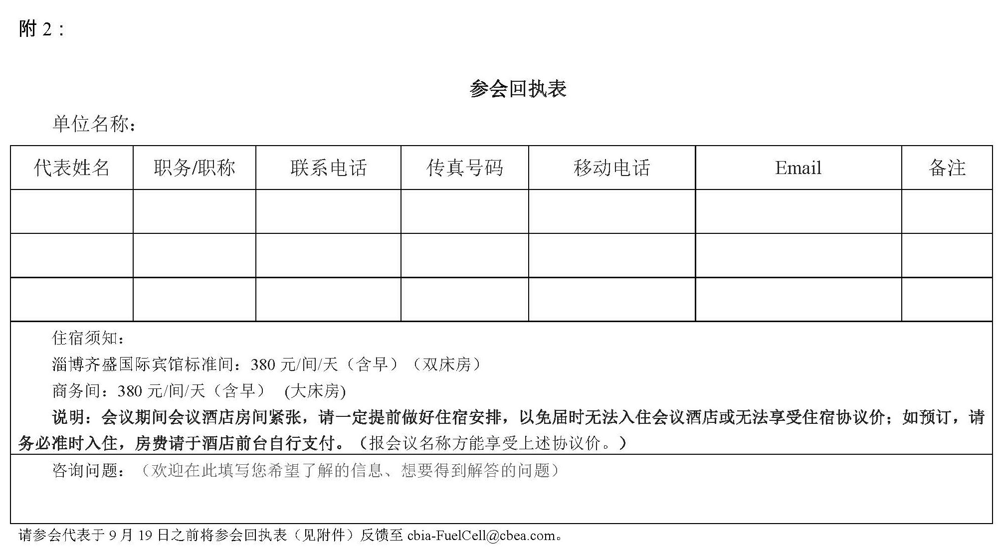 2. 參會(huì)回執(zhí)表
