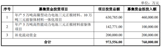 2月22日,華友鈷業(yè)披露公開(kāi)發(fā)行可轉(zhuǎn)換公司債券募集說(shuō)明書(shū)。本次發(fā)行募集資金總額76億元,扣除發(fā)行費(fèi)用后,募集資金凈額擬投資于年產(chǎn)5萬(wàn)噸高鎳型動(dòng)力電池三元正極材料、10萬(wàn)噸三元前驅(qū)體材料一體化項(xiàng)目、年產(chǎn)5萬(wàn)噸高性能動(dòng)力電池三元正極材料前驅(qū)體項(xiàng)目及補(bǔ)充流動(dòng)資金。