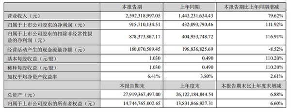 4月20日,恩捷股份發(fā)布2022年第一季度報告表示,2022年Q1實現(xiàn)營收25.92億元,同比增長79.62%,凈利潤9.16億元,同比增長111.92%。