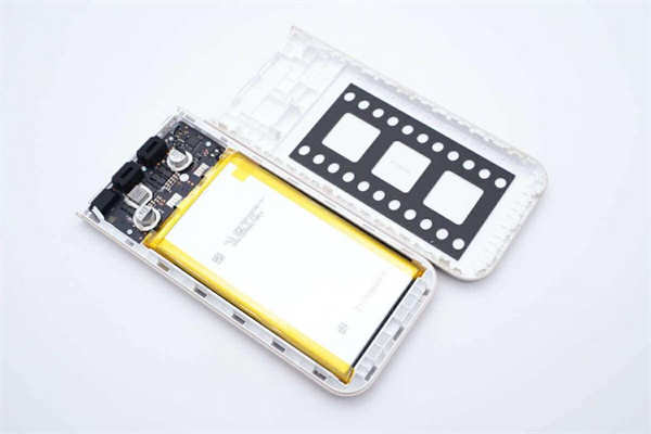 充電頭網(wǎng)通過拆解發(fā)現(xiàn),該 10000mAh 移動(dòng)電源電池組選用兩片軟包電芯組成電池組,點(diǎn)焊至 PCB 通過串聯(lián)方式進(jìn)行供電,兩片電芯之間放置了 NTC