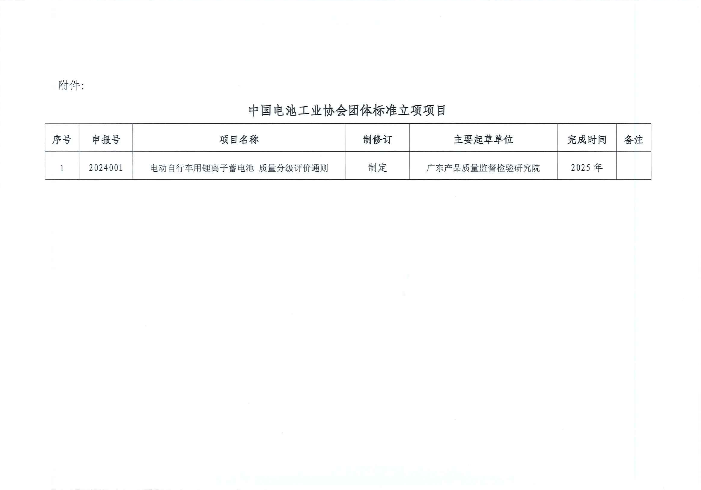 關(guān)于《電動(dòng)自行車用鋰離子蓄電池 質(zhì)量分級(jí)評(píng)價(jià)通則》團(tuán)體標(biāo)準(zhǔn)立項(xiàng)的通知